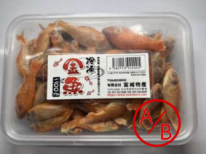 活金魚を冷凍しました。使いやすいバラ冷凍です。1匹ずつはがれています。プラケース入りです。